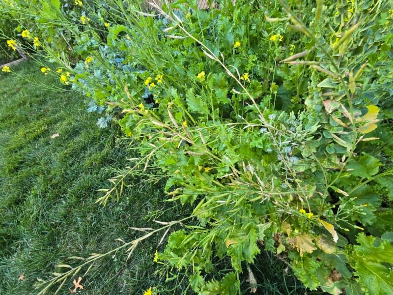 결국 일부는 뽑아 먹고, 남은 자리는 다시 갈아엎어 이번엔 보라색 겨자를 심었다.